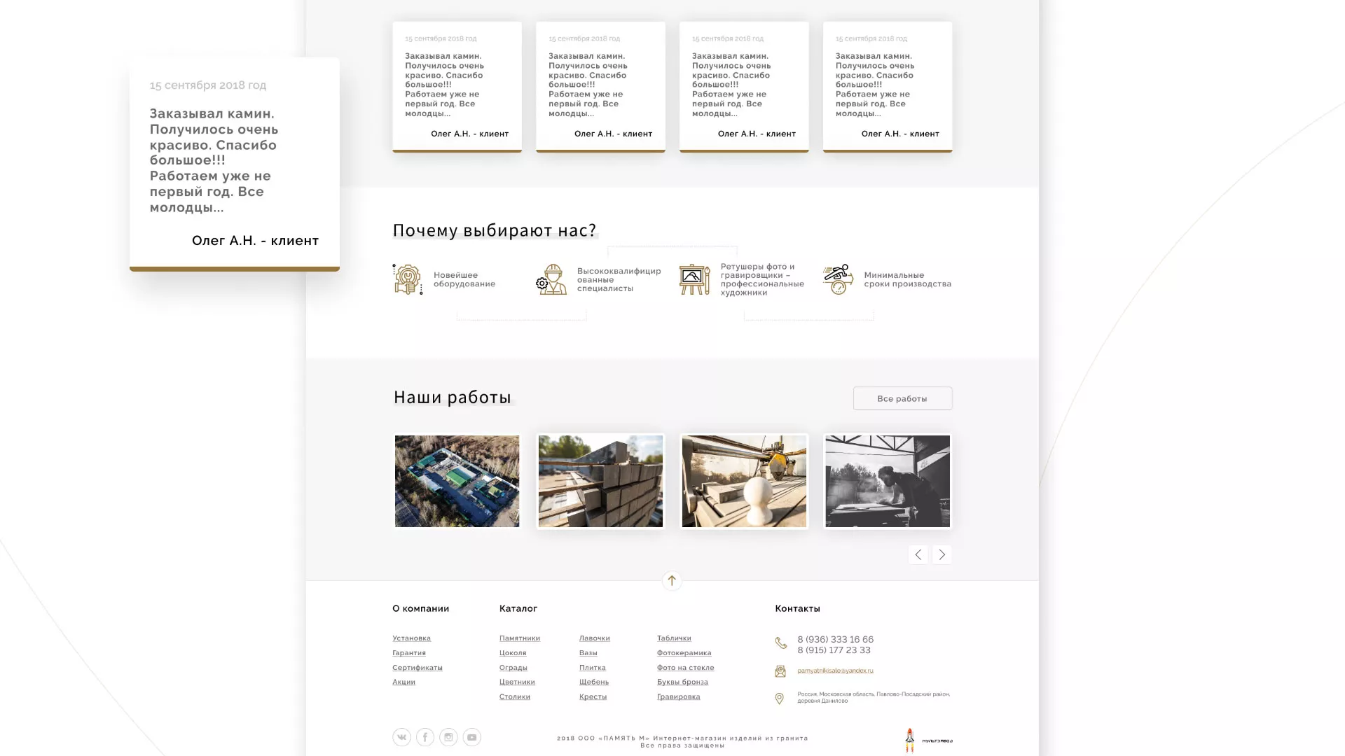 Разработка логотипа, фирменного стиля и сайта в Белорецке для компании «Память-М». Компания является предприятием по изготовлению всех видов надгробных сооружений: памятников, цоколей на могилу, оградок, столов, лавочек, ваз, балясин, плитки, мемориальных комплексов. Компании «Память-М» изготавливает все виды мемориальных изделий на собственном производстве в Белорецке.