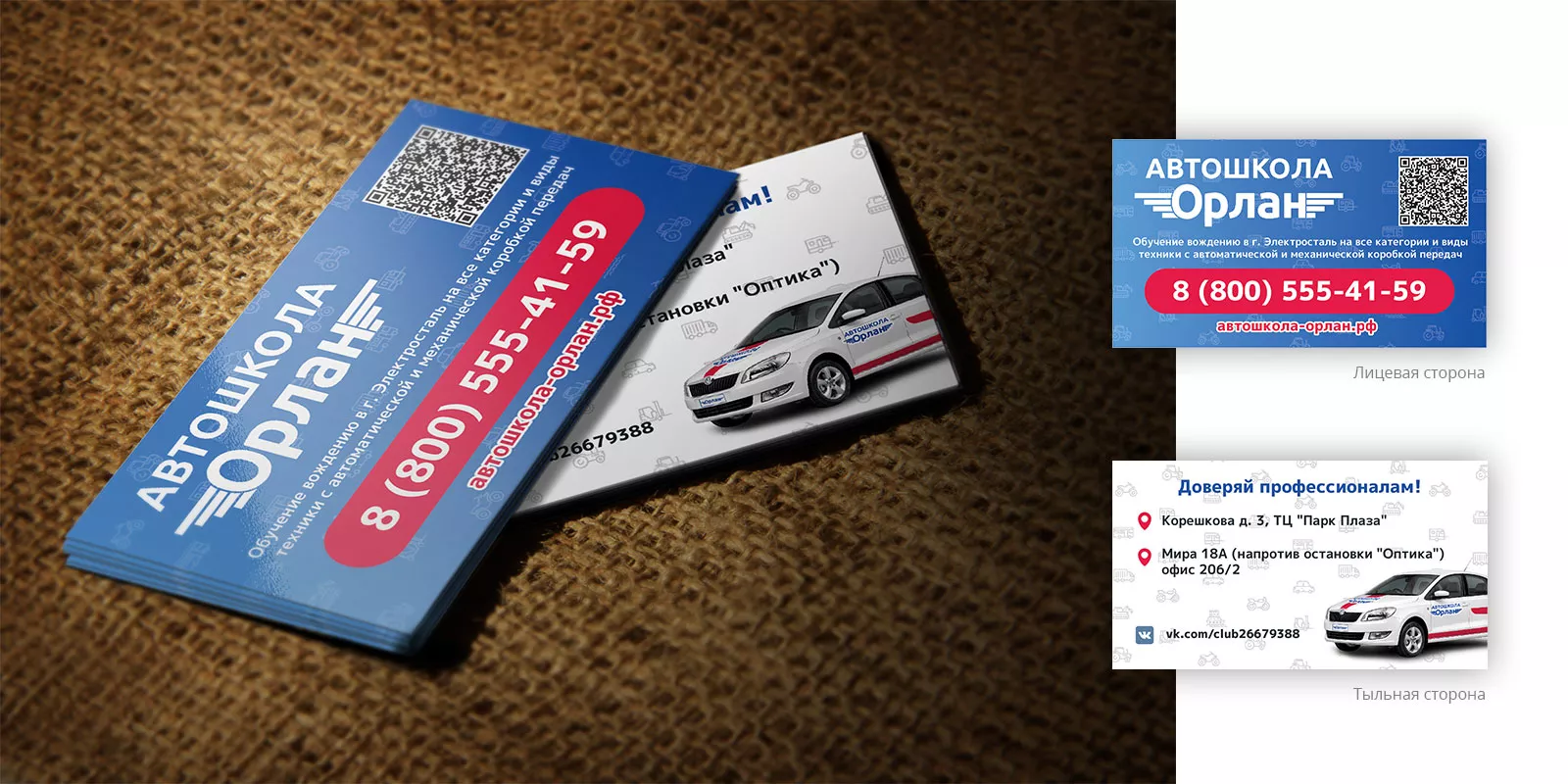 Разработка промо-визиток для автошколы «Орлан» в Белорецке