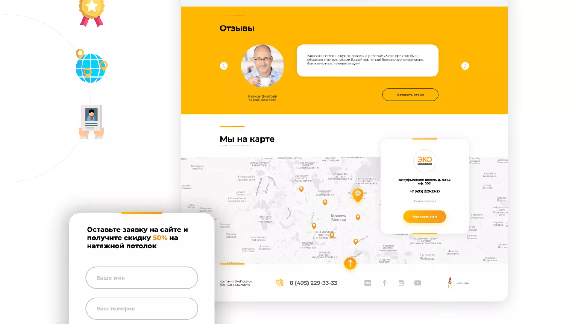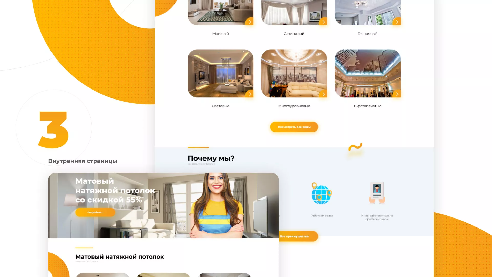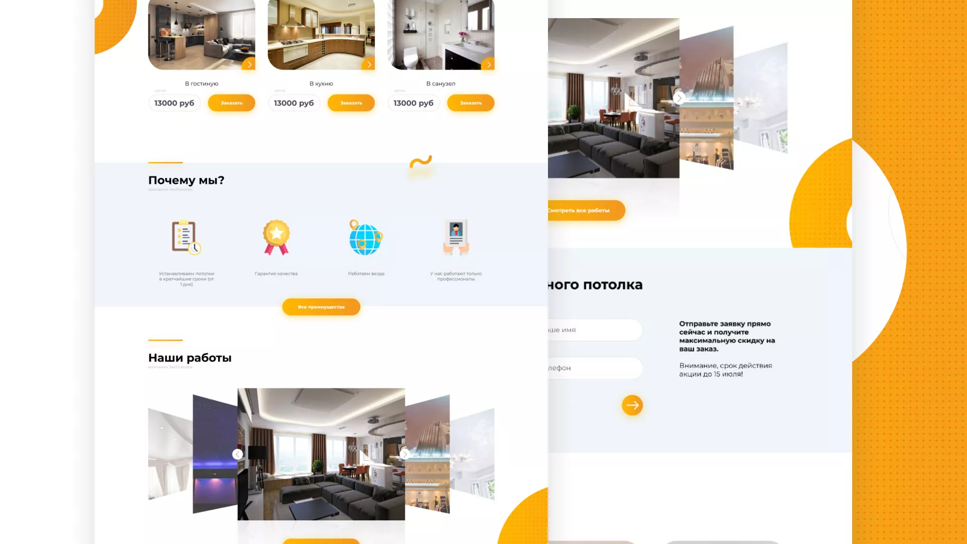 В нашем портфолио в Белорецке Вы можете найти большое количество вариантов готовых сайтов, среди которых есть и сайты по натяжным потолкам. Все проекты выполнены с учётом пожеланий заказчиков, многие из которых стали нашими друзьями.