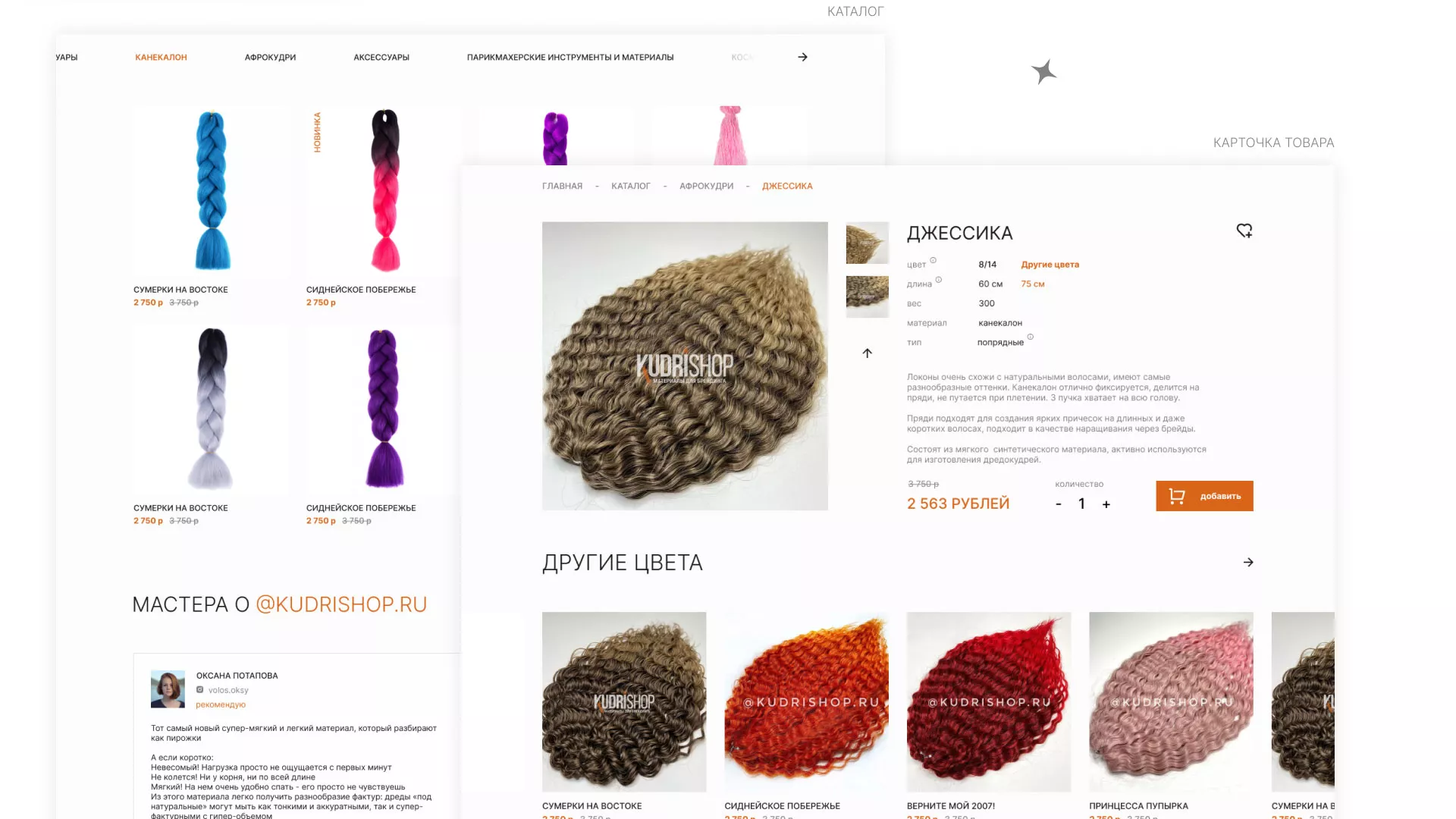 Создание интернет-магазина по продаже афрокудрей и других материалов для брендинга в Белорецке. Целевая аудитория — молодые и современные девушки, желающие разнообразить свой образ.